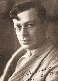 Tristan Tzara, de son vrai nom Samuel Rosenstock, né le 16 avril 1896 à Moinesti (Roumanie), et mort le 24 décembre 1963 dans le 7ème arrondissement de Paris, est un écrivain, poète et essayiste, de langues roumaine et française, et l’un des fondateurs du mouvement Dada, dont il sera par la suite le chef de file.